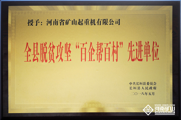 2018年5月9日下午,長垣縣召開“長垣縣脫貧攻堅第七次推進(jìn)會議”,會議表彰了在扶貧攻堅工作中做出突出貢獻(xiàn)的集體和個人,河南礦山獲得“全縣脫貧攻堅百企幫百村先進(jìn)單位”稱號。